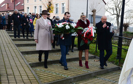 Po Mszy Św. Burmistrz Węgorzyna Monika Kuźmińska wraz z Przewodniczącym Rady Miejskiej w Węgorzynie Janem Mazuro, przedstawiciele Powiatu Łobeskiego Wicestarosta Krzysztof Gwóźdź i Wiceprzewodnicząca Rady Powiatu Janina Mazuro oraz przybyłe delegacje złożyli wiązanki pod obeliskiem "Cud nad Wisłą".